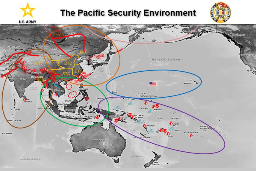 TRADOC G-2 briefing on the “The Pacific Security Environment” presented during the Army’s 250th birthday celebration.